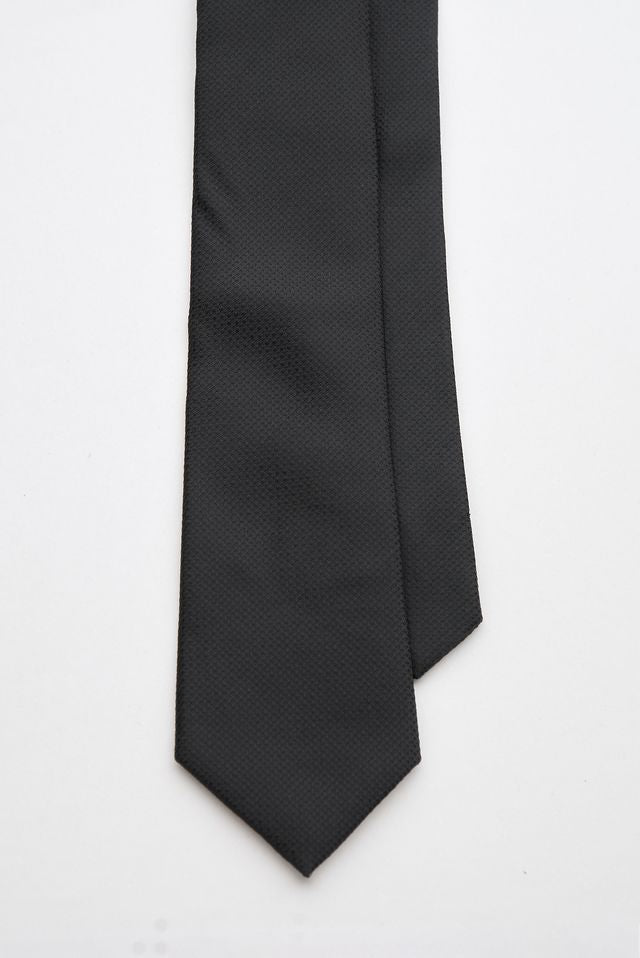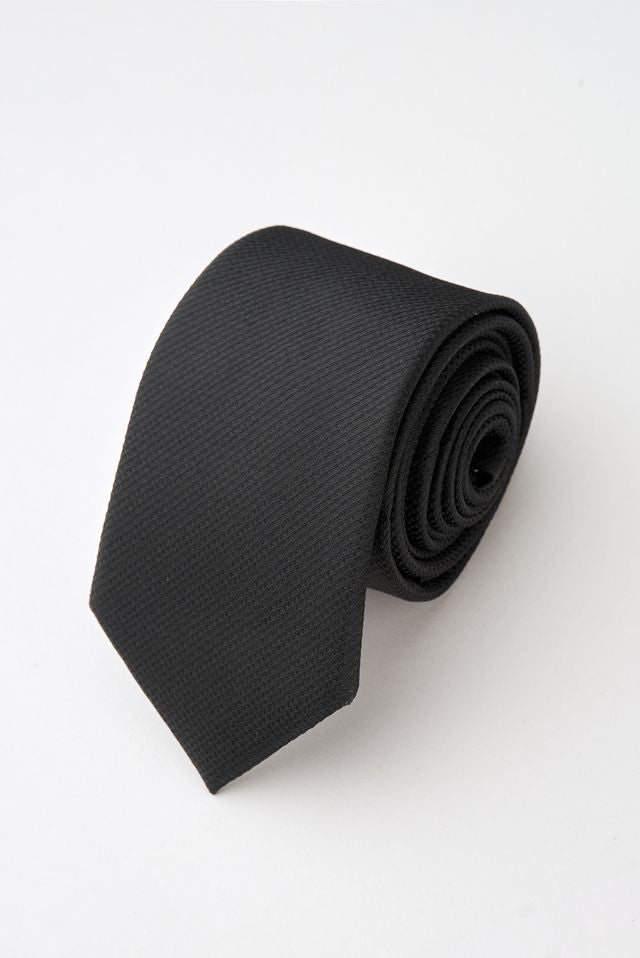 Refined and versatile, this black textured tie set is a staple for any wardrobe. Featuring a matching tie, pocket square, silver tie bar, and coordinating cufflinks, this 4-piece set is presented in a stylish gift box—ideal for business attire, weddings, or gifting.