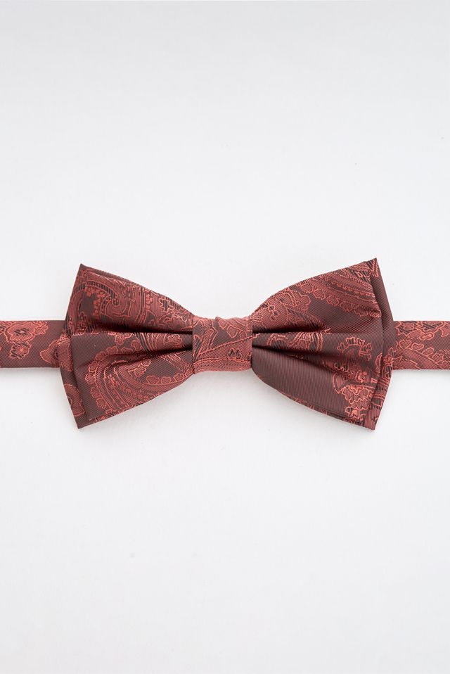A stylish bow tie set in rich burgundy with an elegant paisley pattern. Includes a matching pocket square and cufflinks, making it the perfect accessory pack for weddings, formal dinners, and black-tie events.