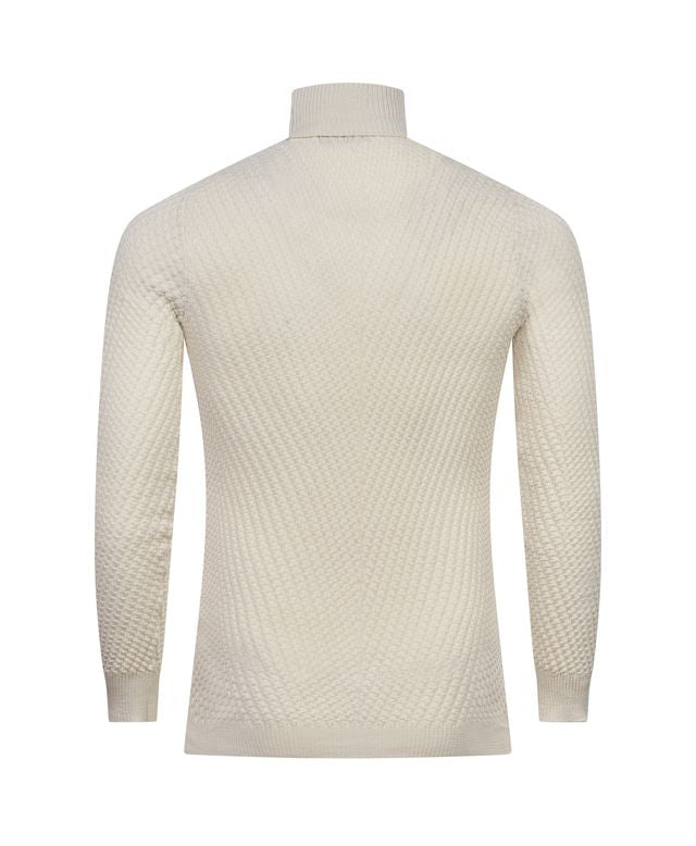 Elevate your winter wardrobe with this Santoro Milan Camel Textured Turtleneck. Crafted in Italy, this slim fit...