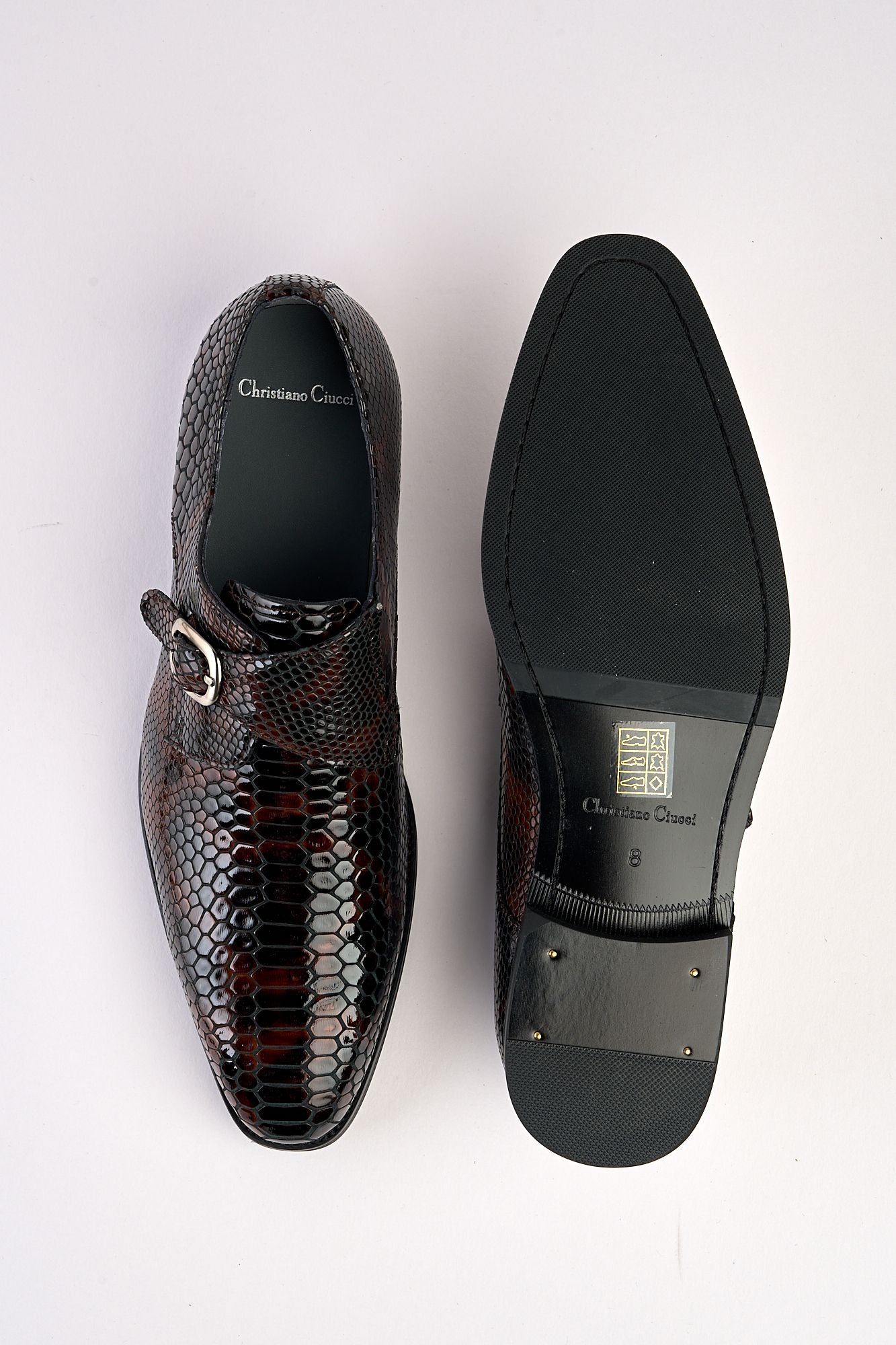 Saviano Coffee Crocodile-Pattern Monk Shoe