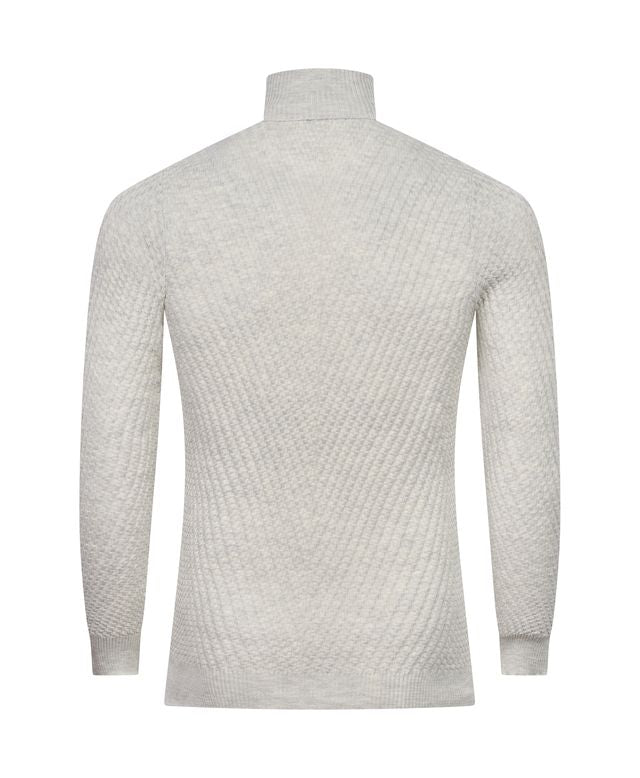 Understated elegance meets Italian craftsmanship in the Santoro Milan Ecru Textured Turtleneck. Designed with a slim, tailored fit, this piece features a refined textured knit that adds subtle depth to the minimalist silhouette. The soft ecru tone provides a versatile base for layering or standalone wear, pairing effortlessly with both formal and casual looks.