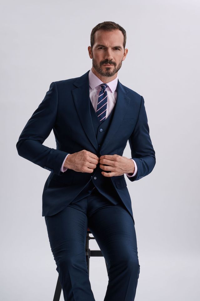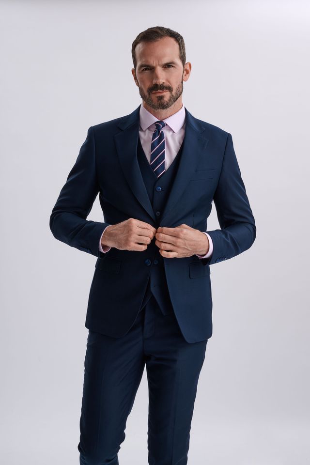 Refined, modern, and effortlessly versatile — the Fabio Navy Three Piece Suit is a statement of contemporary elegance. Tailored from a premium wool-blend fabric, this impeccably cut ensemble features a single-breasted jacket, a five-button waistcoat, and slim-fit trousers, all in a rich navy hue that complements every skin tone and occasion.