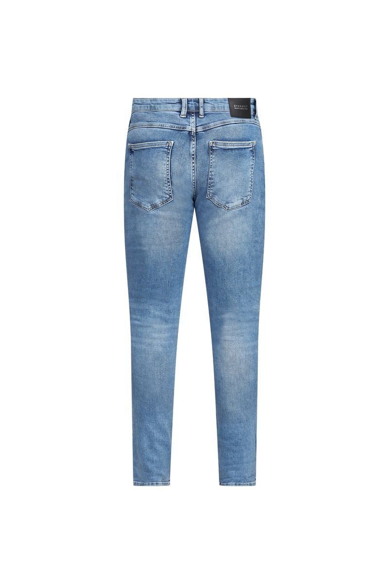 A versatile mid-blue slim-fit jean with subtle distressing and natural fading, designed for everyday wear with a clean, modern edge.