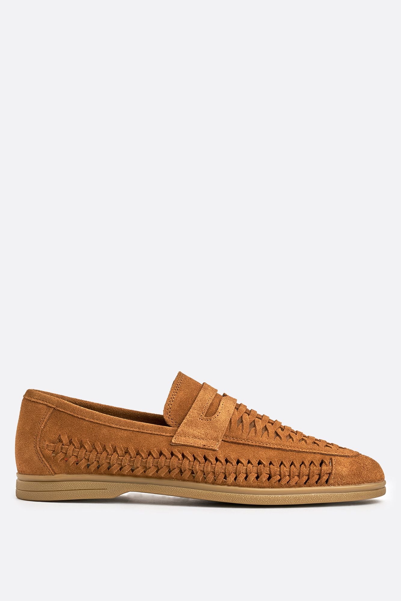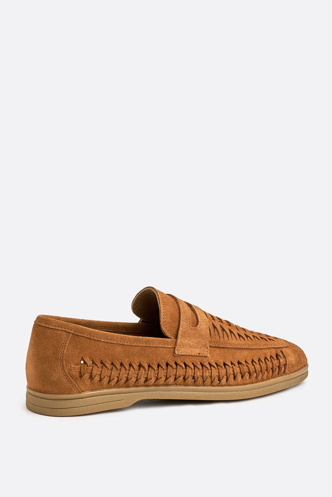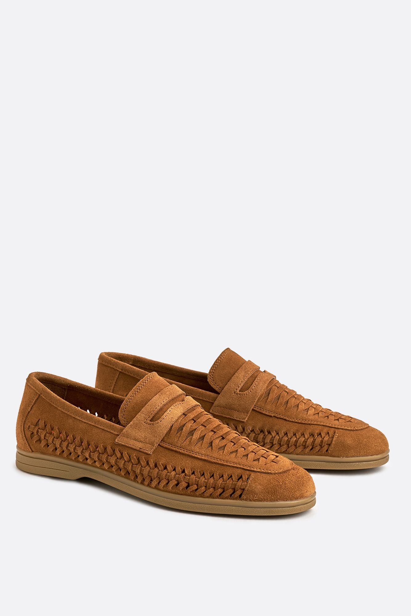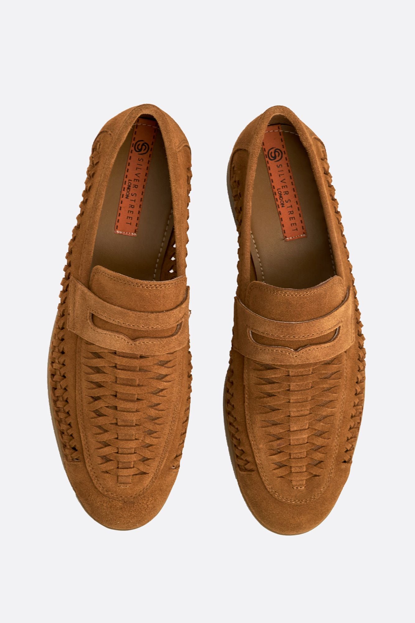 Step-In loafer with woven leather panels. Available in burnished leather. The perfect classic contemporary shoe.