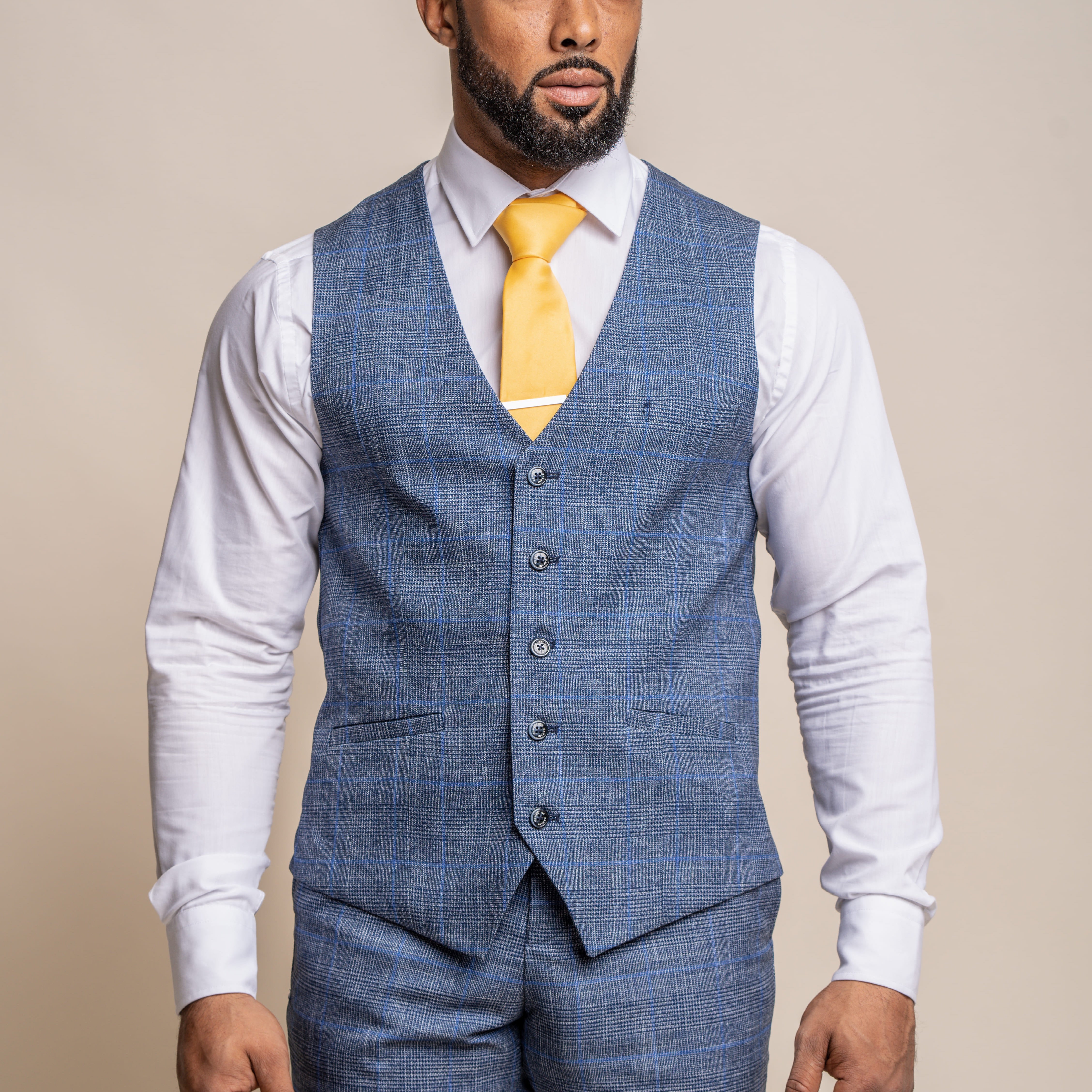 Mens tweed look blue checked waistcoat
