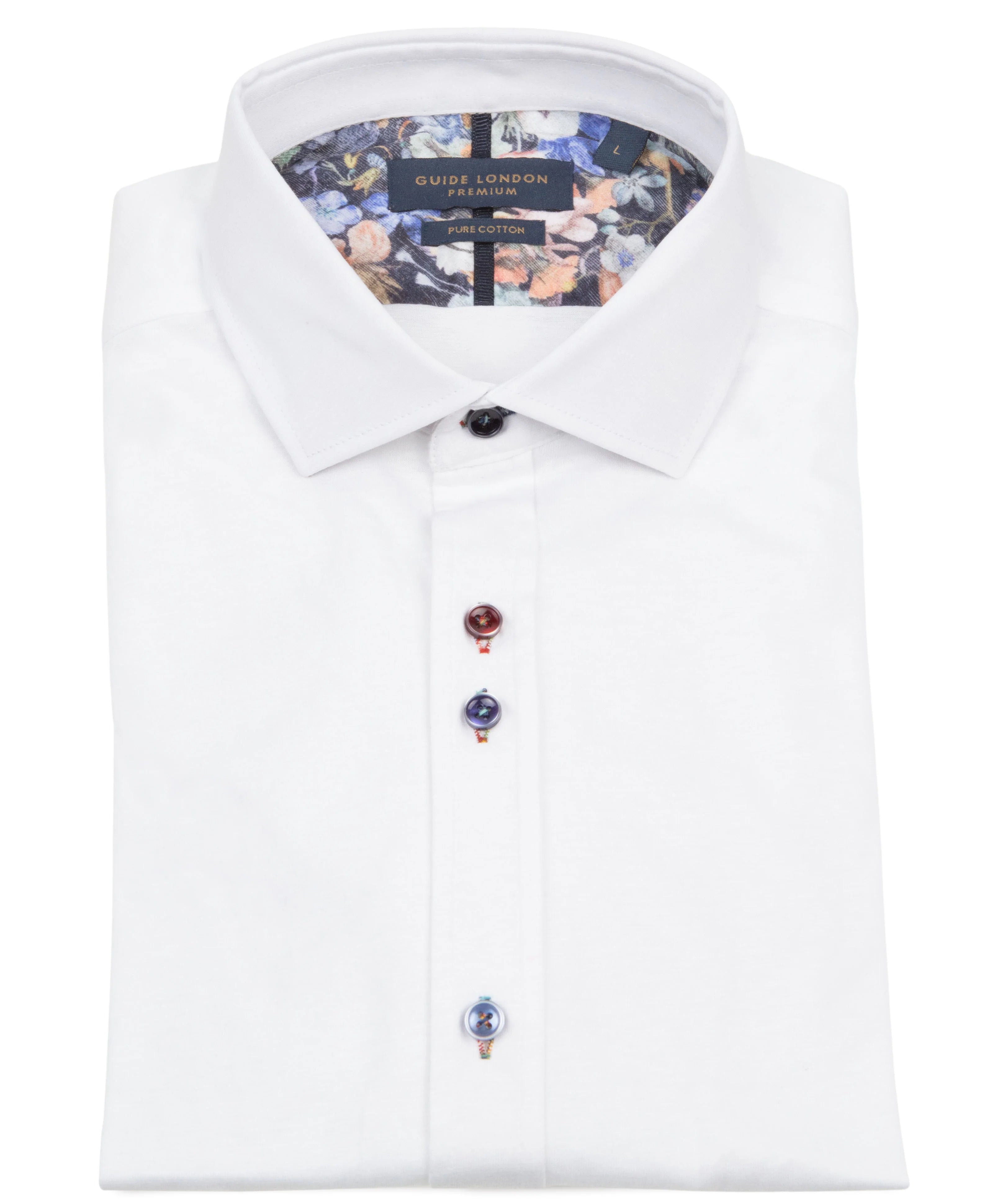 Introducing our classic white shirt with a pop of colourful contrast. This shirt is the epitome of classic style with a modern twist. Crafted in a versatile white hue, it features a playful surprise in the form of colourful contrast buttons that add a touch of vibrancy and personality to your outfit.