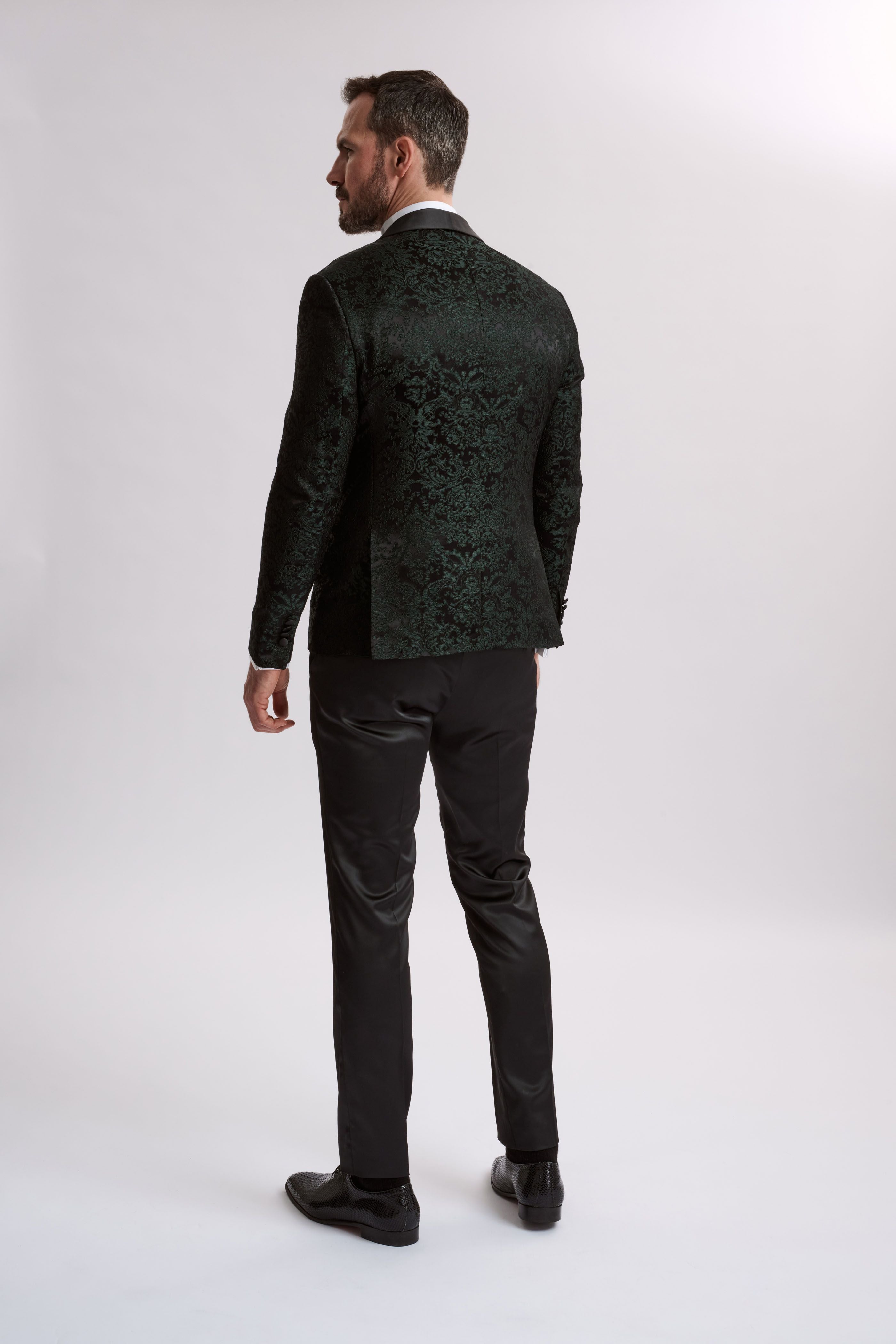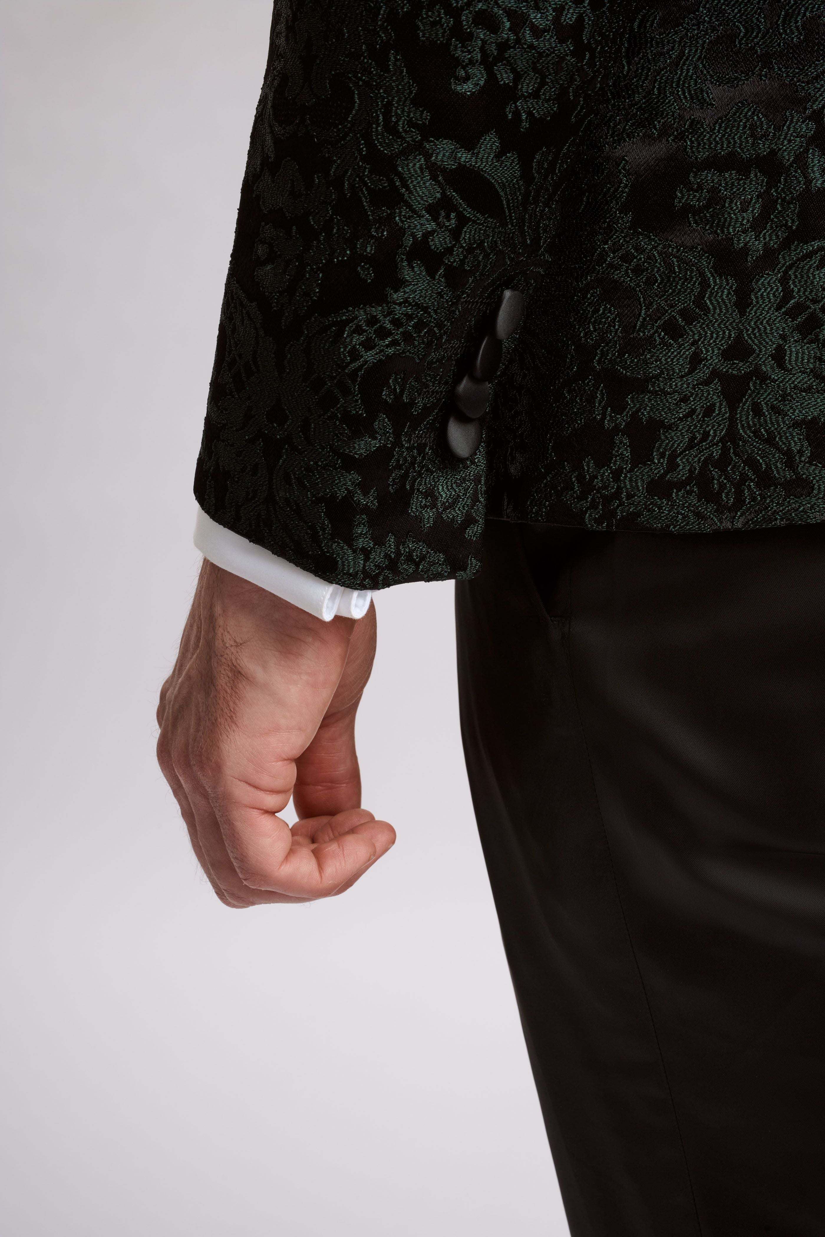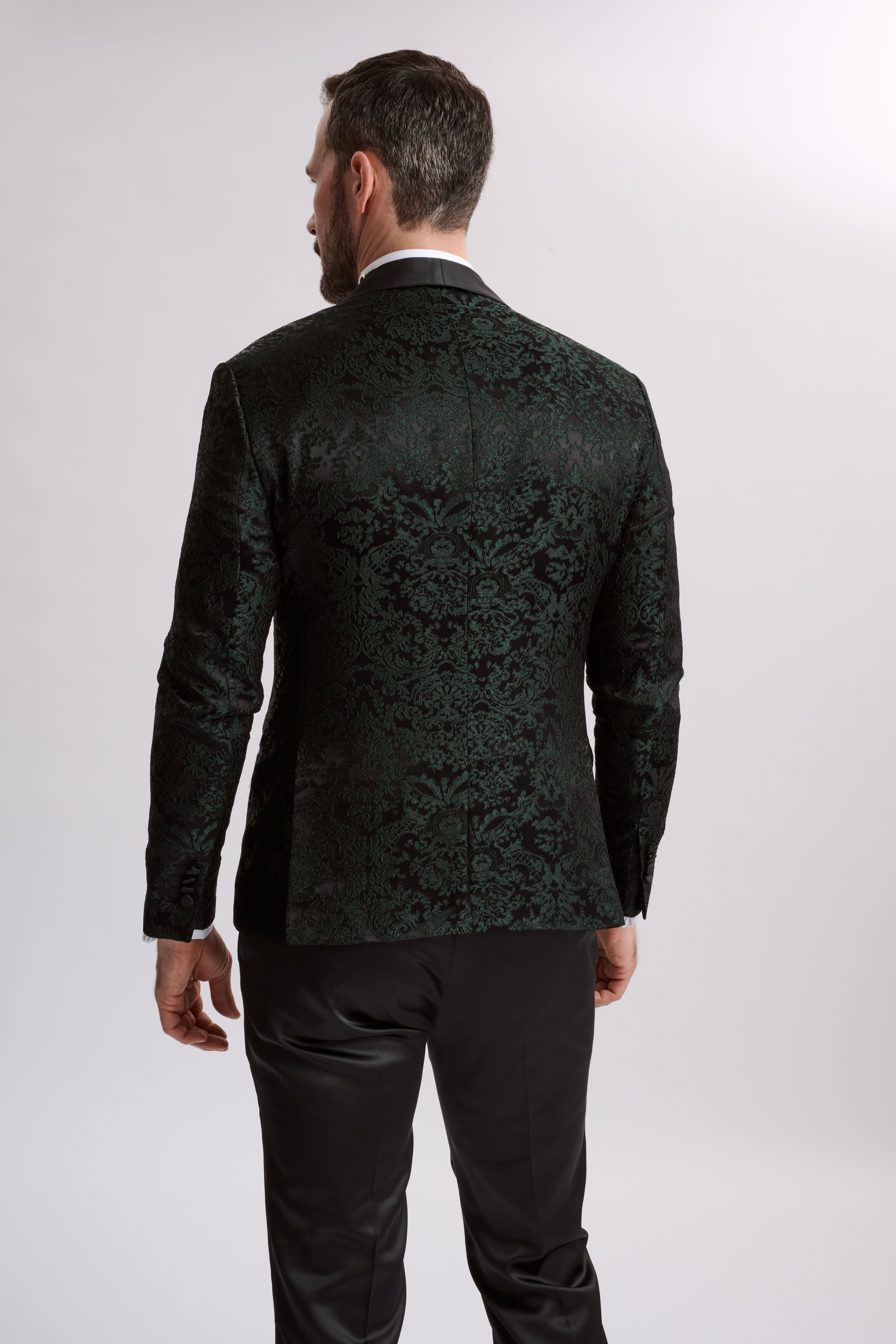 Discover the epitome of luxury and style with Santoro Milan’s Paisley Three-Piece Brocade Olive Suit. This textured suit is a masterpiece of design and craftsmanship, perfect for the discerning gentleman who appreciates the finer things in life.