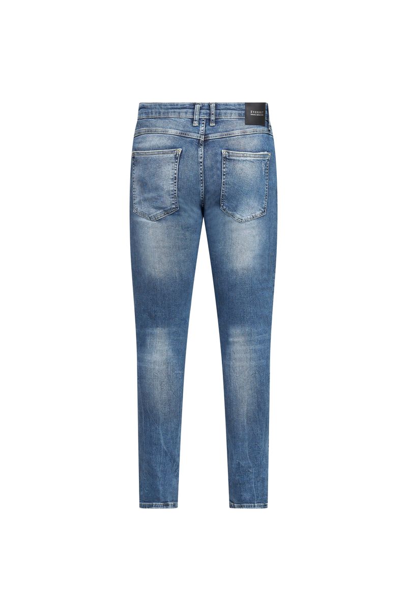 A clean, everyday slim-fit jean in a classic mid-blue wash. Subtle fading through the thighs and knees gives it a worn-in look without heavy distressing, making it easy to dress up or down. Finished with a tapered leg, traditional five-pocket styling, and a comfortable stretch feel for all-day wear.