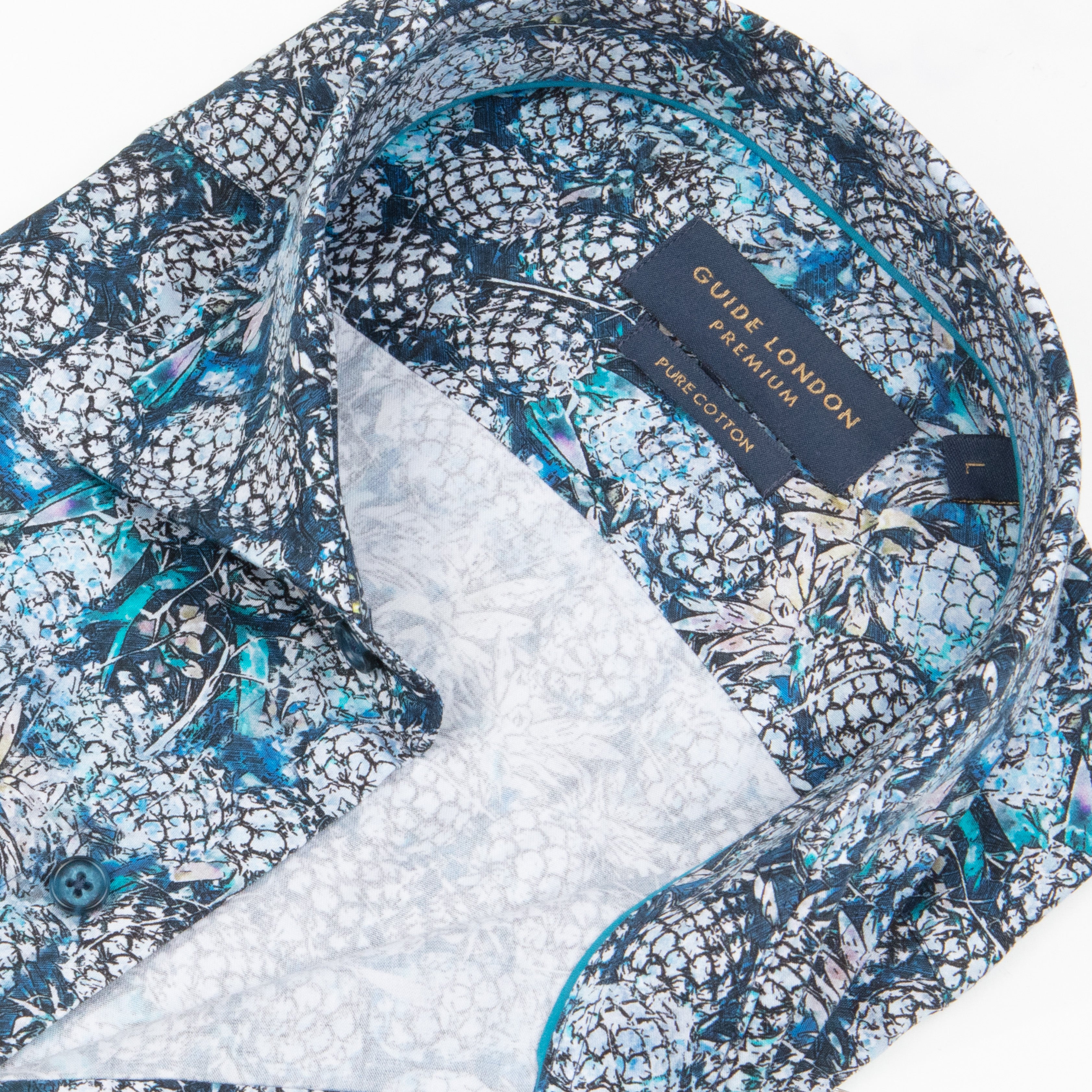 Indulge in tropical vibes with our blended pineapple print shirt. This unique design features shades of blue with a hint of teal, creating a refreshing and vibrant look. The pineapple motif adds a playful and stylish touch, making it a perfect choice for summer outings and beach-inspired events.