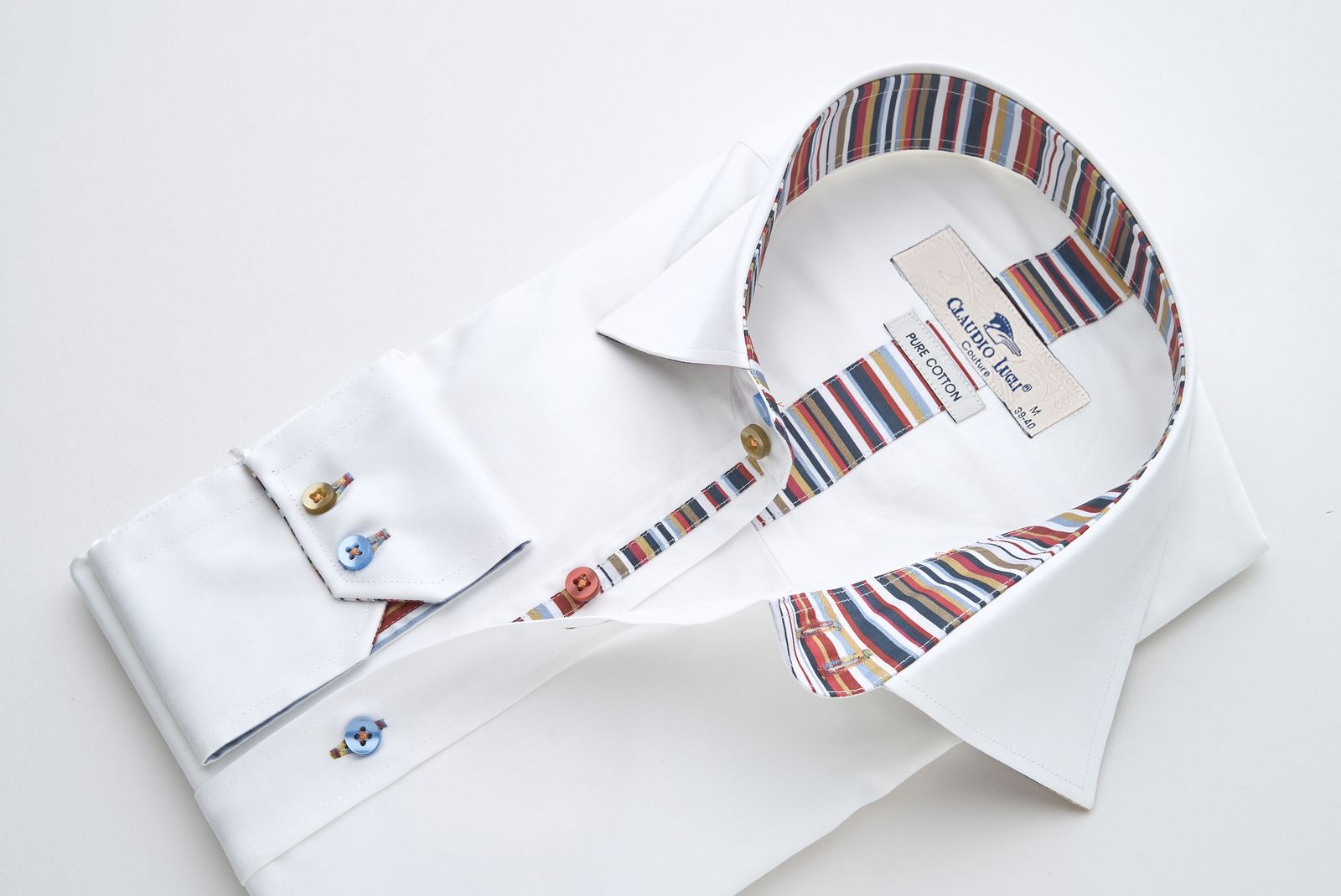 White Shirt with Multicolour Stripe Contrast